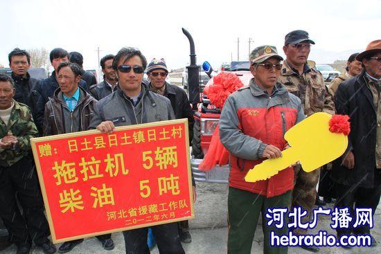 6 月10日上午,带着河北省人民的深情厚谊,河北省第六批援藏干部党支部向日土县日土村、热脚村两村捐赠了5辆农用拖拉机及5吨柴油等农用物资,共折合人民币20余万元,为两村农牧民群众日常劳作增添了新的动力。河北省第六批援藏干部领队、地委副书记李龙出席捐助仪式并向群众代表发放了物资。